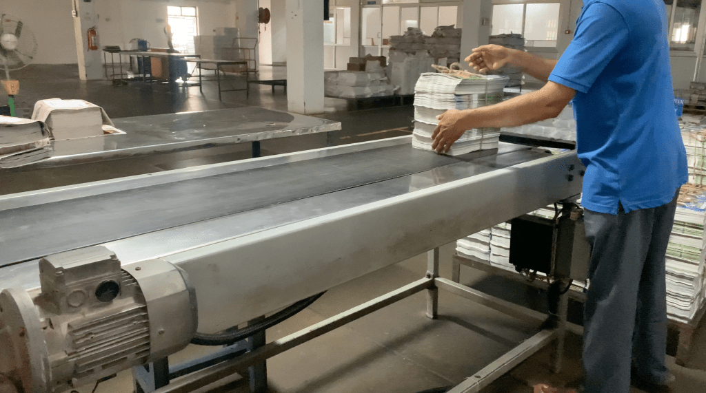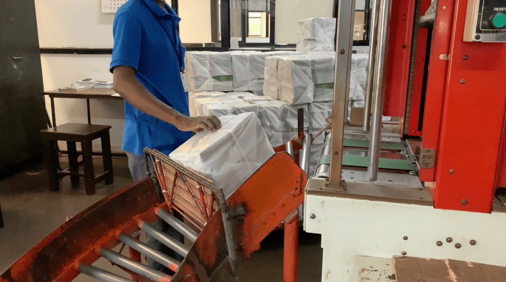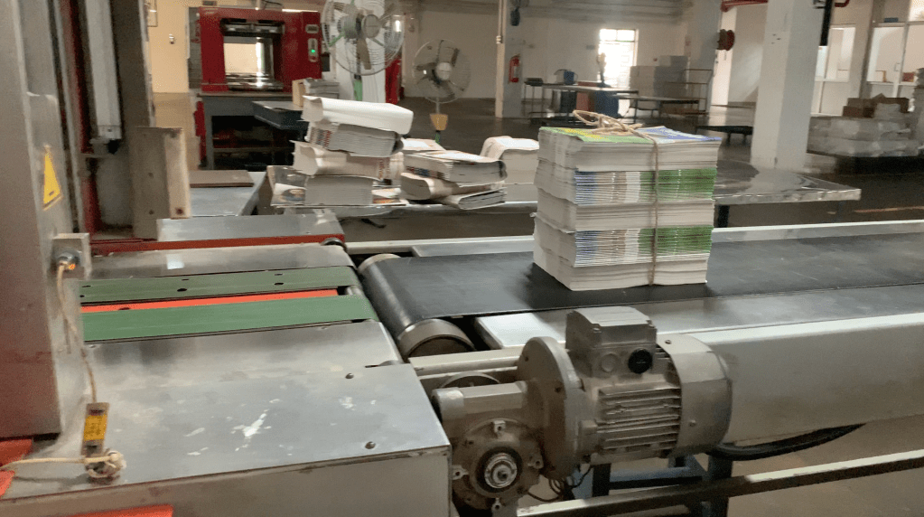 Next, you can see below how smoothly a set of magazines is put together, packed, bound, and made ready to dispatch to the agents for further distribution.