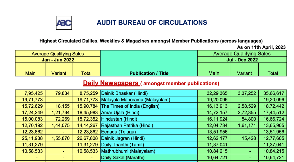 Before that, some trivia about Malayala Manorama. According to the ABC Report from July-December 2022, Malayala Manorama is the second largest circulated daily newspaper in India with 19,20,096 copies sold.